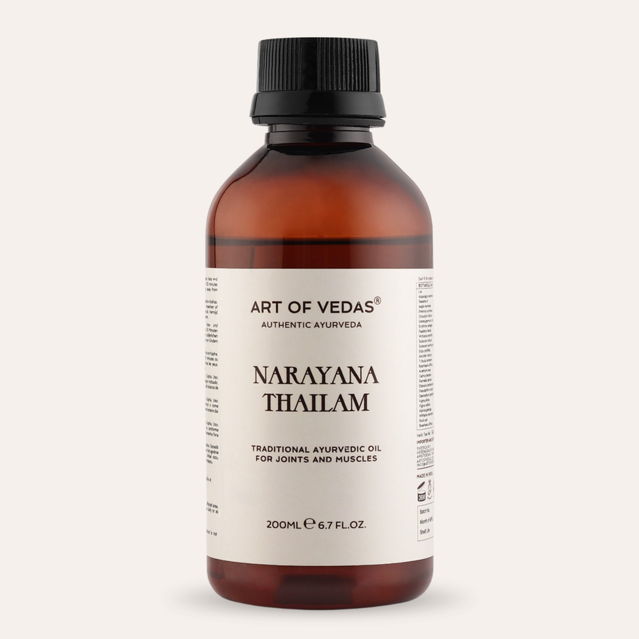 Narayana Thailam ist ein klassisches ayurvedisches Massageöl, das traditionell verwendet wird, um Steifheit zu lindern, die Muskeln zu nähren und die Flexibilität in Gelenken und Bändern zu fördern. Hergestellt mit Sesamöl, Milch und über 25 Kräutern, besitzt es Vata-beruhigende und Brimhana (nährende) Eigenschaften. Es wird häufig bei muskuloskelettalen Erkrankungen, Sportmassagen, Rehabilitation nach Verletzungen und täglichem Abhyanga empfohlen, um Kraft und Beweglichkeit zu erhalten.